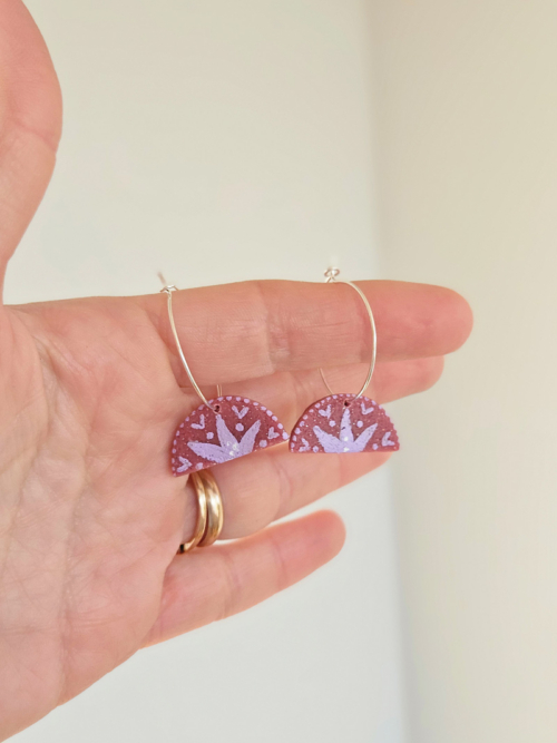 Kõrvarõngad on valmistatud polümeersavist ning kaunistatud käsitsi maalitud etnomotiividega, kasutades kvaliteetset akrüülvärvi. Iga detail on hoolikalt läbimõeldud, et luua ehe, mis on ühtaegu pilkupüüdev ja tähenduslik.