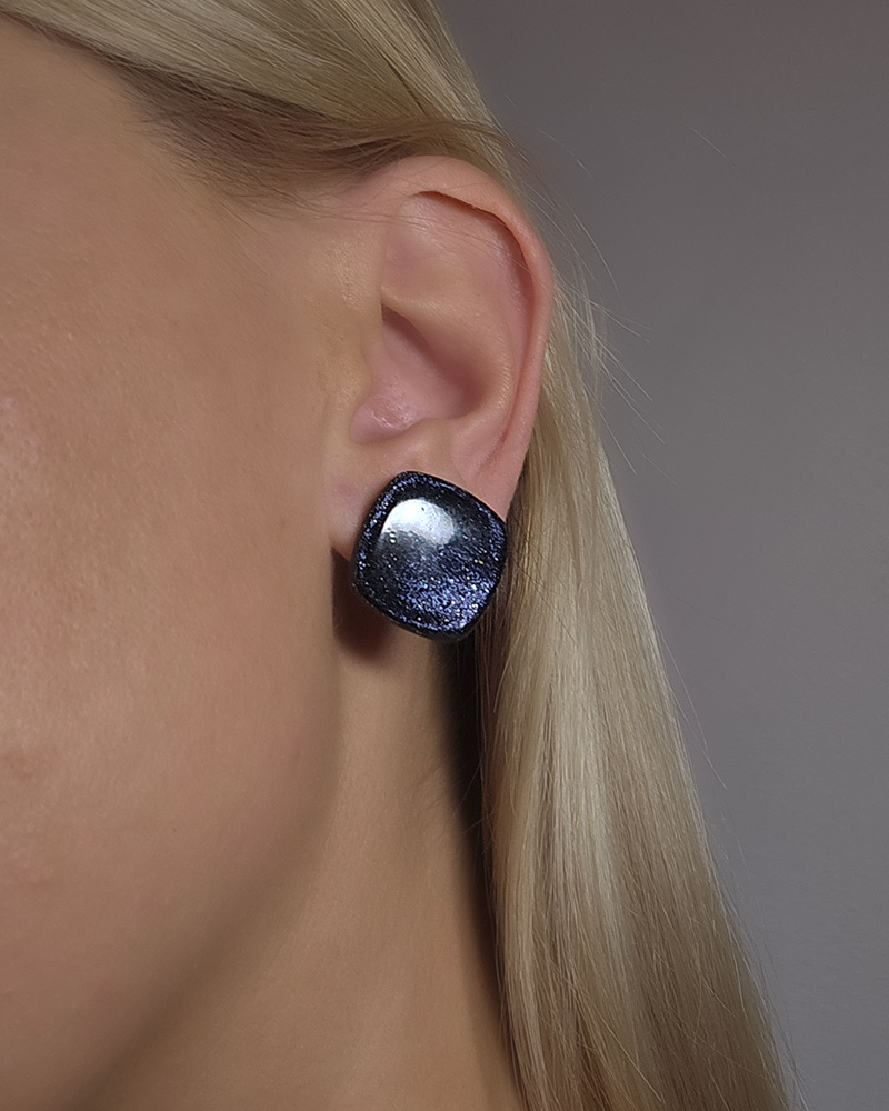 Pidulikud sädelevad musta värvi kõrvarõngad. Käsitöö kõrvarõngastele annab lõpliku lihvi läikiv ja tugev vaigu kiht. Kõrva läbiv osa on niklivabast metallist.